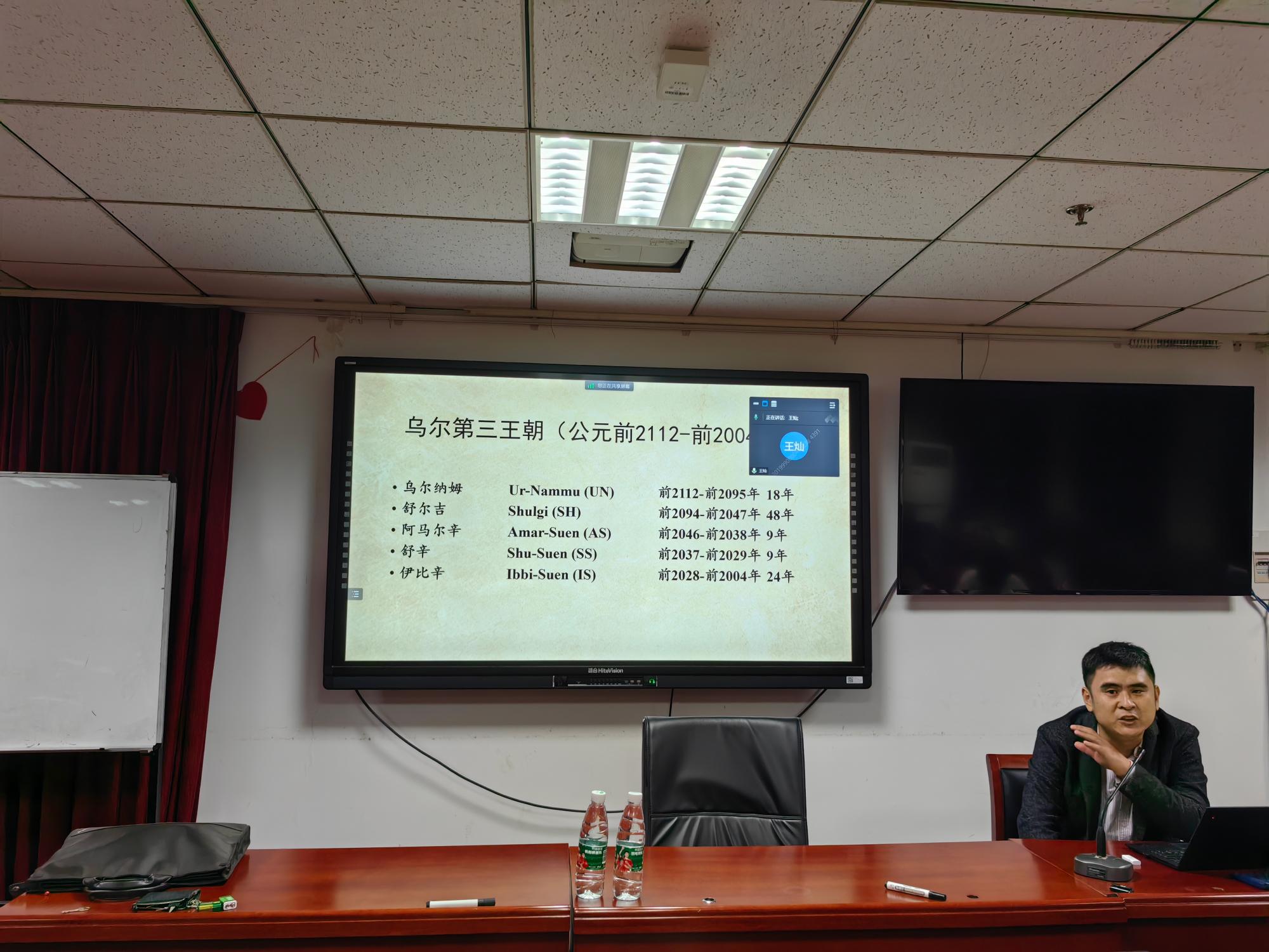 讲座开始后,刘昌玉先介绍了亚述学的发展历程。他提到19世纪至20世纪初,近东古代文明的探索经历了从早期盗宝到考古发掘的转变。在此基础上,楔形文字的成功破译推动了亚述学的出现。作为古代两河流域文明的重要组成部分,乌尔第三王朝(公元前2112-前2004年)是苏美尔文明的最后辉煌阶段,历时108年。目前关于乌尔第三王朝的泥板约有10万余件,这为研究这一王朝的历史提供了可能。