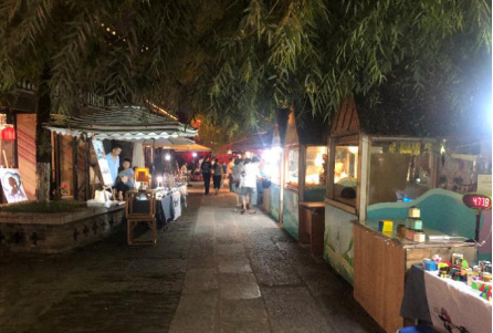 8月3日,团队成员集中调研了芙蓉街-百花洲历史文化街区,具体包括后宰门基督教堂、芙蓉街、百花洲、曲水亭街等重要节点。其中,百花洲的小南湖夜市最令团队成员印象深刻,小南湖夜市虽名为夜市,实际上却是一个文艺雅集,琳琅满目的文创产品与丰富精彩的文艺演出相得益彰。摊主不会主动吆喝揽客,不以售卖为主要目的,因此整个街区少了些“斤斤计较”的争竞,更多的是“到此一游”的坦荡,将小众的艺术以大众的方式展示出来,营造了属于老济南的市井气息。