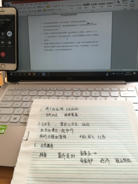 ylzzcom永利总站线路检测历史文化学院“红沂行”赴临沂市关于沂蒙革命老区红色旅游分析调研团以“文旅融合”背景下的沂蒙革命老区红色基因传承与创新转化为课题开展社会实践活动。受疫情影响,非省内团队成员按计划开展线上调研。通过线上会议明确分工,团队成员迅速投入到了实践调研中。活动前期在各大网站、公众号、微博等平台上收集相关资料,做好充足的准备工作;在临沂市旅游局的帮助下获得各大旅游景区及博物馆的联系方式并依次拨打电话征求采访许可;活动后期,各位成员有序整理采访资料并形成调研报告。