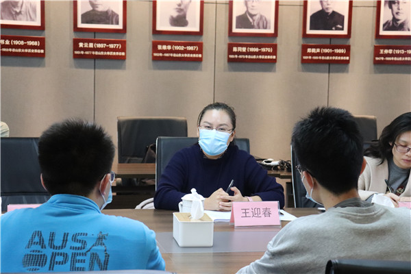 王迎春结合今年的就业形势以及往年学校员工就业的相关数据与同学们交流,从毕业生求职过程中存在的观念不对、方法不会和信息不够的问题进行了分析。她强调同学们在升学就业过程中要综合分析自身条件,充分了解市场需求,避免完美主义观念;要关注招聘就业信息,把握求职机遇,敢于尝试,在磨练中提升自我;要脚踏实地,珍惜时间,争取实现预期目标。