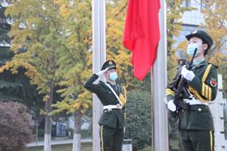 10月26日清晨,历史文化学院团员青年代表在中心校区大成广场参加升旗仪式。活动以“弘扬抗疫精神、助力脱贫攻坚、展现青春担当”为主题,进一步强化了团员青年的爱国意识、团结意识和责任担当意识。