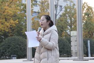 升旗仪式结束后,乔亦杨同学作为员工代表进行了国旗下的演讲,全体团员青年举起右臂,重温入团誓词。在演讲中,乔亦杨讲述了疫情期间学院团员青年的志愿服务先进事迹、学院各团支部开展的抗疫活动以及暑期社会实践的战疫专项立项等活动,向全体团员青年发出倡议,号召同学们要“从抗疫精神中汲取力量,发扬奋斗精神,积极参与社会实践与志愿服务。把小我融入到祖国的大我之中,把个人理想融入到实现中华民族伟大复兴的中国梦之中,服务人民,奉献祖国,用青春书写无愧于祖国、无愧于历史的华彩篇章。”乔亦杨同学的演讲精彩激昂,富有感染力。在庄严的国旗下,责任感与使命感在同学们心中迸发。