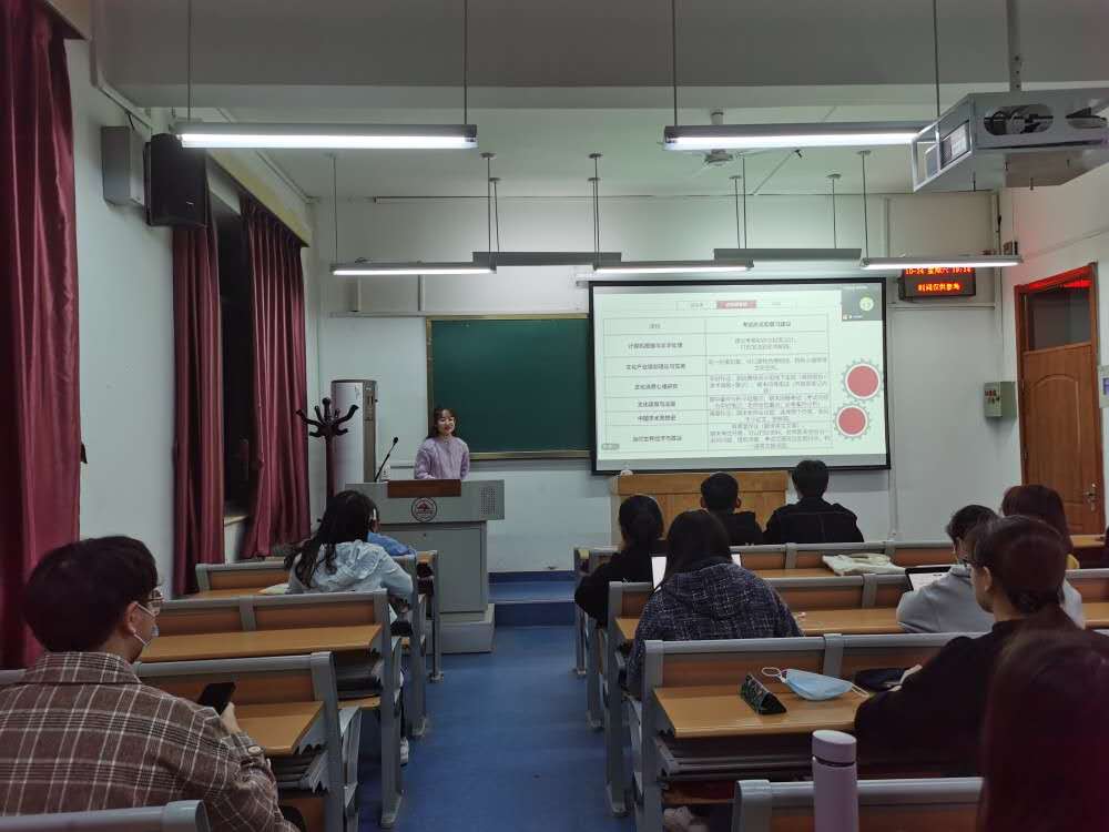 胡少焯学长从当下受到热议的“内卷”现象和自身经历切入,希望同学们不要只关注绩点,而是要更关注自己真正学到了什么,根据文管的专业特点,要广博涉猎,但也要有深耕的领域,着重强调了数学学习的重要性。此外学长还总结了各科老师的教学特点,以帮助同学们更好地适应相应的教学模式。关于出国留学的方面,他给出了提前准备托福雅思考试、挑选合适中介、了解大学排名及专业状况三方面的建议,最后根据同学们的疑惑分享了考证、英语学习经验。交流会进行到最后的答疑环节,学长对同学提出的英语辅导书推荐等问题进行了解答,在班长进行总结后,此次交流会圆满结束。