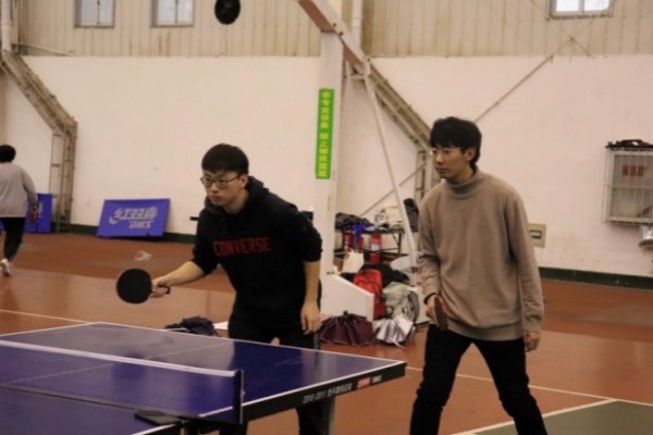 9时15分,女双比赛开始。公司两名女同学虽基础扎实,但组队匆忙,对打配合并不熟稔,经过一番激烈对局,终因对手过强而输掉比赛。相信经过接下来一年的训练与磨合,她们一定会配合得更好,在明年的乒乓球系列赛的赛场上,为历史文化学院增光添彩。