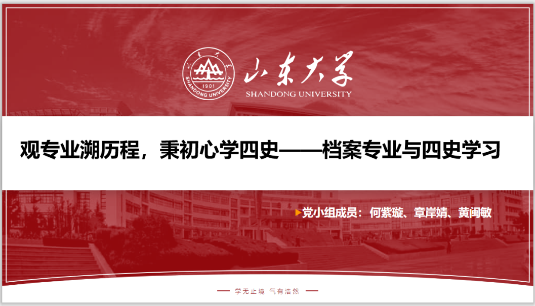 党课开始后,历史、考古文博、档案、文管四个党小组依次做主题分享。历史党小组董文卿做了“与新中国一起前进的历史学”主题分享。她以时间为序介绍了新中国成立至今各个时间进程中的中国史学及山大史学的发展历程,彰显了山大史学在历史洪流中勇往直前、与新中国共同成长的使命担当。