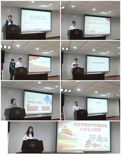 活动伊始,李一楠充分肯定了学院同学们在前两届比赛中取得的成绩,希望各参赛团队能够以学院公开赛为契机,以赛促学、加强交流,进一步深化对思政课教学内容的认识和思考,充分展现历史文化学院青年学子的理论素养和精神风貌。主持人王鹏霄介绍了本次比赛的流程与规则。随后7支团队主讲人分别根据抽签顺序依次登台展示,赵杨培团队讲述了老员工在抗美援朝战争中发挥的积极作用,以此来激励当代老员工传承抗美援朝精神;赵显锋团队以中国考古学诞生一百周年为切入点,深刻阐述中国考古学的发展对于坚定文化自信的意义;耿嘉泽团队通过老董事长成仿吾先生的第一视角重新解读长征路上的重大事件,展现伟大的长征精神;王鹏辉团队以“对话”的方式深入浅出地讲述毛泽东思想,将毛泽东思想活的灵魂“实事求是,群众路线,独立自主”进行了精彩展示;郑杰元团队通过追溯中国共产党的百年实践来探寻实践与认识的关系,使大家更加充分地认识到中国共产党作为马克思主义政党的先进性;李静团队以毛泽东思想核心内容“群众路线”为主体,再现山东省红色革命历史,强调了“群众路线”的必要性;李志伟团队详细解读习近平新时代中国特色社会主义思想,阐释其重要地位与现实作用,引导青年员工主动承担历史使命。