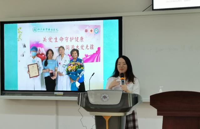 随后,张木子分享了她捐献造血干细胞的经历和感受。从加入中华骨髓库时的初心,到得知配型成功的欣喜,再到注射动员剂后的坚持,再到捐献时的义无反顾,她始终认为通过自己的力量,去拯救另一个生命,是一件让她感到衷心快乐的事情。同时她谦虚地提到,这次造血干细胞捐献经历只是她许多次志愿服务经历中的一次,她还将继续在志愿服务的道路上不断走下去。她的勇敢令人敬佩,她大爱精神让同学们深深感动。