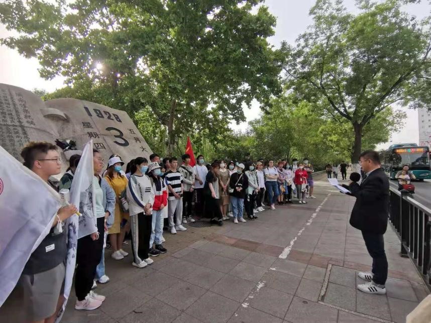 近日,历史文化学院组织开展员工徒步缅怀活动,前往济南“五三惨案”纪念碑开展党史学习教育,致敬革命先烈。本次活动由辅导员曹明明、徐伯谦带队,130余名本、硕、博员工共同参与。
