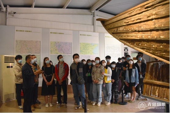 在菏泽市历史与考古研究所所长孙明的带领下,队员们参观了元代沉船展厅。孙明结合自身发掘经验,为队员们介绍元代沉船的发掘过程和成果。2010年9月,菏泽元代沉船在建设工地中被发现,随后省文物局迅速组织开展发掘工作。沉船为木质内河船,由于保存环境的不同,左侧木质基本腐朽,右侧及底部保存相对完整。沉船残长21米,除船头和船尾的独立舱外,共分为10个船舱。沉船及周围出土陶器、瓷器、漆器、玉石、玛瑙、石器、铁器、铜器、玉饰等不同质地的文物110余件。在菏泽市发现的元代沉船保存基本完整,为研究元代木船形制及制作工艺提供标本;同时对菏泽地区漕运史、河运交通及蒙元时期黄泛区的地形地貌等研究均有重要意义。