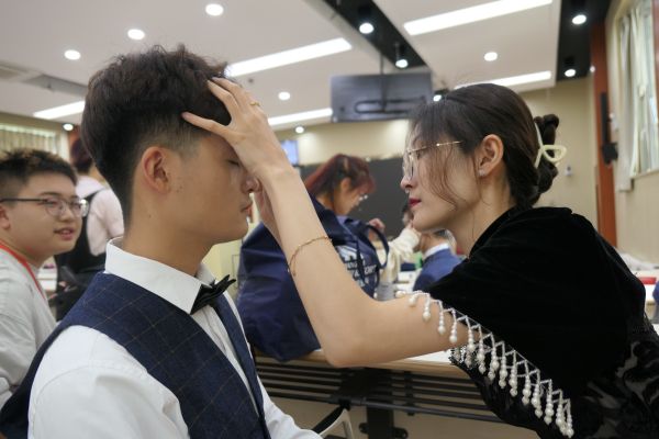 比赛开始前,合唱团成员在电教北楼101室集合,成员们怀着兴奋又忐忑的心情进行了赛前最后的流程梳理和排练,他们神情专注,精神饱满,希望能为几个月的辛苦训练画上一个完美的句号。