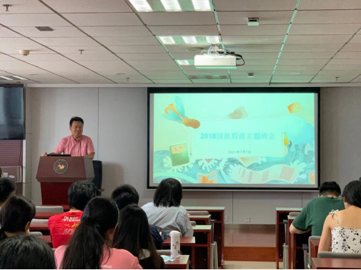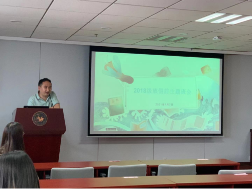 朱嘉铭老师首先向同学们布置了暑假的相关安排。她提醒同学们在暑假期间正常进行每日健康信息填报,做好个人防护,带动家人落实疫情防护措施,注意居家生活安全,保持积极健康的良好心态。朱老师强调,同学们处于未来选择的转折期,开学即将面临保研、考研、找工作等关键节点,应该充分利用这个较长的暑假时间,合理规划、克服拖延,实现时间的充分利用。