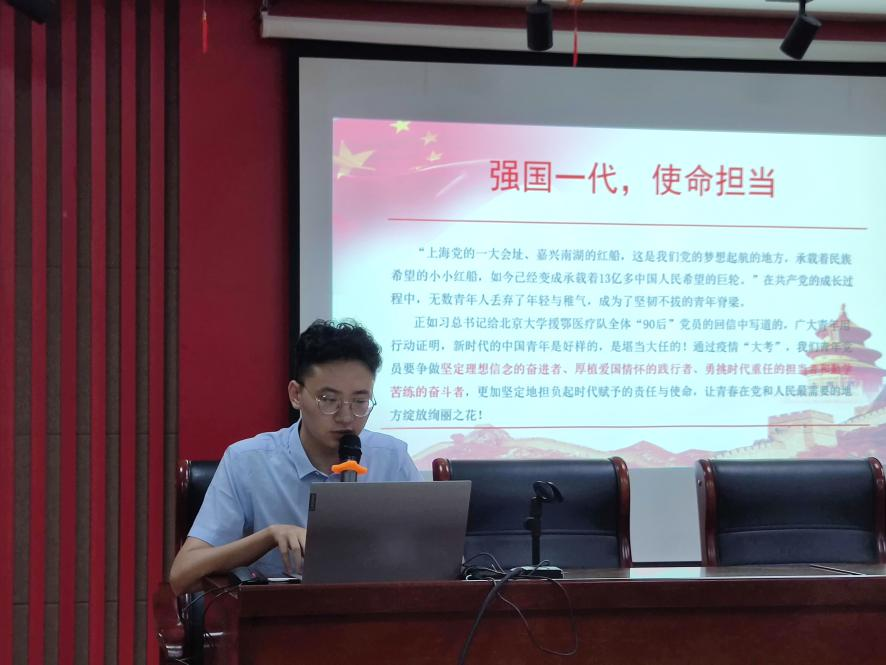 宣讲前,闵子骞社区王宁老师带领大家了解了社区党员服务的基本情况,介绍了社区的基本构成。党课宣讲中,团队成员王鹏辉带领大家回顾了中国共产党所走过的百年光辉历程及所取得的辉煌成就,从完成新民主主义革命,到实现社会主义革命,再到进行改革开放新的伟大革命,使大家充分认识到 “我们党在内忧外患中产生,在磨难挫折中成长,在攻坚克难中壮大”的历史,在座的老党员深受感触,纷纷表达了自己对于革命先烈的尊敬;围绕中国共产党百年历史,王鹏辉还与大家分享了不同时期中国青年的担当与作为,引导广大社区青年“肩负历史使命,坚定前进信心,立大志、明大德、成大才、担大任,努力成为堪当民族复兴重任的时代新人”;结合当下的疫情防控,他又对中国疫情防控所取得的成就及助力全球抗疫、推动构建人类命运共同体的责任担当进行了梳理和分析,通过讲述中国抗疫故事,引导大家坚定中国特色社会主义的道路自信、理论自信、制度自信和文化自信,在座有党员的家人作为志愿者参与了援鄂行动,在分享其所历所感后,团队成员及社区党员无一不为之动容;最后,王鹏辉同学就坚定理想信念、加强道德修养、提升综合素质方面,激励广大青年勇担时代赋予的责任与使命,为实现中华民族伟大复兴的中国梦奋力拼搏,让青春在党和人民最需要的地方绽放绚丽之花。