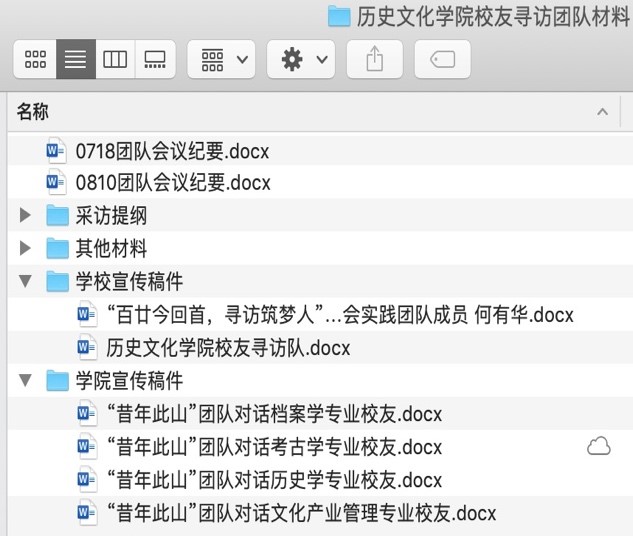 采访过后,团队成员将采访视频、员工事迹、员工照片等内容进行了细致的整理工作,形成独属于受访对象的档案资料,并与受访员工一一核对。“昔年此山”团队通过新闻稿、推文、视频等多种媒体形式,分享受访员工的优秀事迹与人生经验,力求全方位、多角度地展现寻访成果,希望与历史文化学院全体同学一同向优秀员工学习,共同进步。