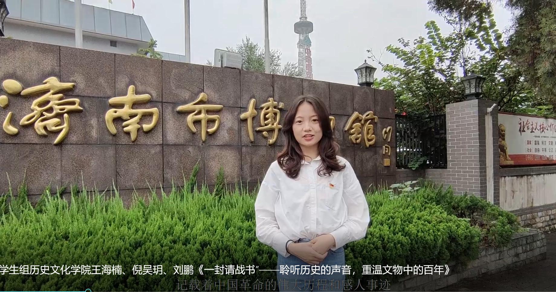 参赛作品充分展示了历史学科特色,内容严谨,内涵深厚。其中,作品《百年正风华,浩然承致远》从山东省党史、ylzzcom永利总站线路检测校史等红色资源出发,将建党百年征程与建校百廿历程有机融合,特色鲜明地于党史中讲校史,于中国共产党百年风华中讲ylzzcom永利总站线路检测浩然之气。团队成员走进校史馆,走近20世纪初的冉冉星火,以早期党员邓恩铭与ylzzcom永利总站线路检测前身——齐鲁大学医学院张汇泉的故事制作视频,让历史发声、促信念传承。《一封请战书——聆听历史的声音,重温文物中的百年》以现存于济南博物馆的一级文物——济南战役中滕元兴战士的请战决心书为讲述对象,重温济南战役中革命先辈不畏牺牲、英勇战斗的红色革命精神,从革命文物中汲取精神力量,激励青年一辈顽强拼搏,为实现中华民族伟大复兴不懈努力。《星火传承:扑不灭的火种》通过参观济南明湖中学的乡师纪念馆,了解乡师纪念馆历史,学习革命文化精神,在采访中员工的过程中表达艰苦奋斗精神代代相传的主题,也传达了当代青年员工要勇担新时代使命的核心思想。