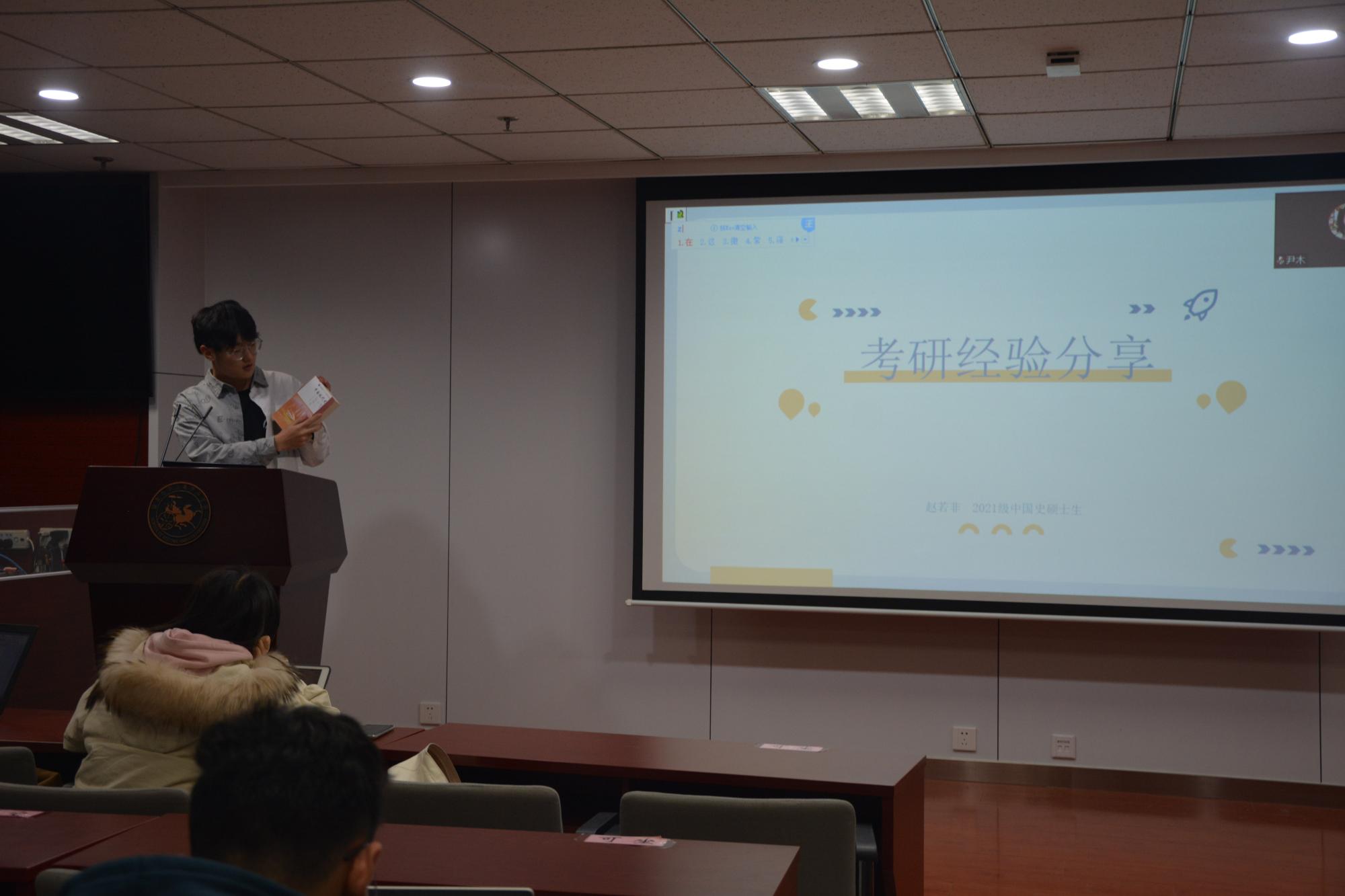 为推进“三全育人”,发挥朋辈辅导优势,促进历史学专业同学完善学涯职涯生涯规划,11月11日,历史文化学院于知新楼A1017举办“展翼计划”历史学方向保研、考研、考公经验分享会,公司历史学专业六位优秀学长学姐受邀主讲,2019级本科生辅导员赵显锋主持,各年级历史学专业本科生参与学习。