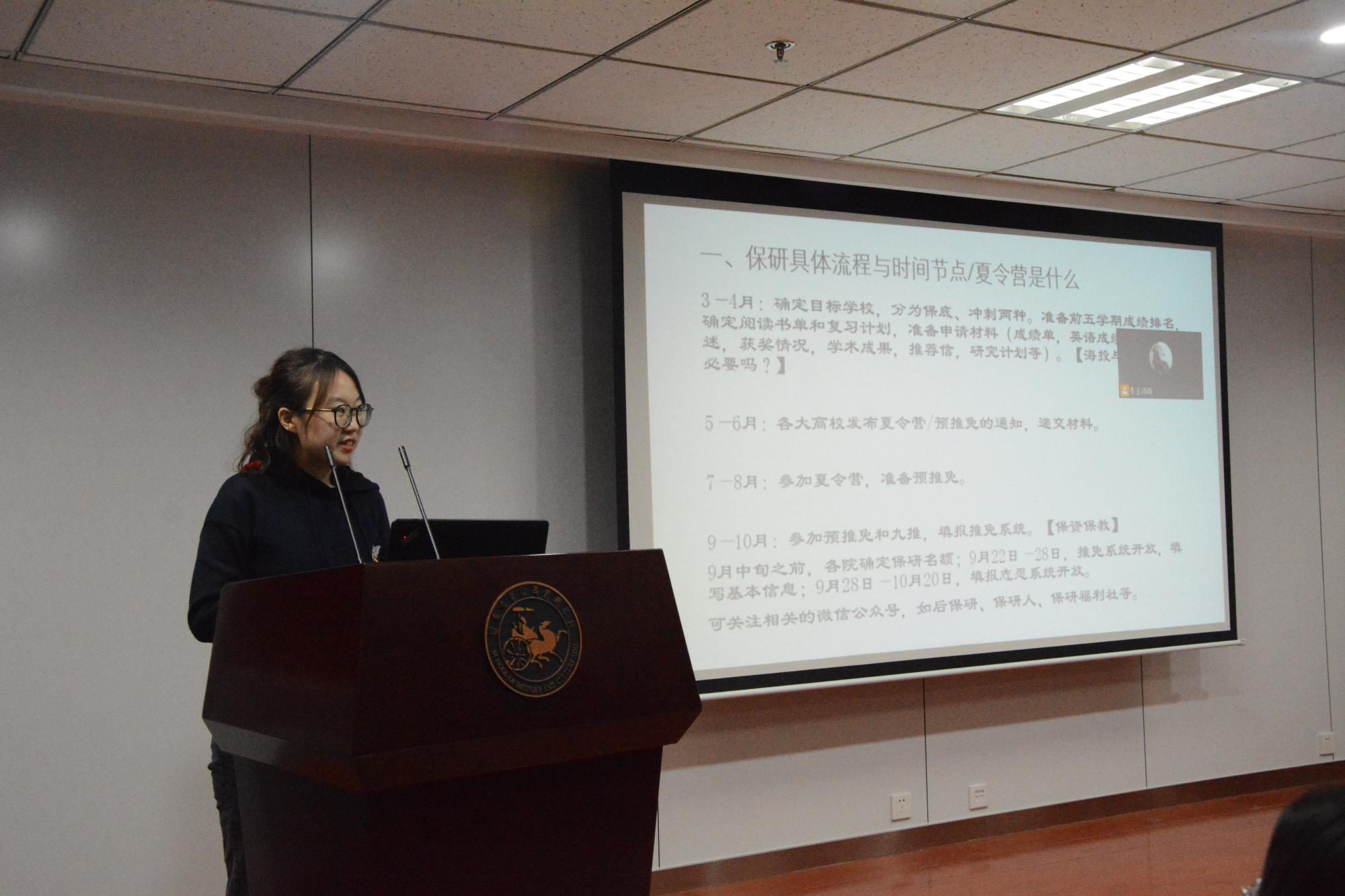 针对保研,2018级历史学本科生、现保研至中国人民大学马克思主义学院当代中国史专业的董欣怡学姐从具体流程、时间节点、考试科目分享、心态调试等方面分享经验,详细介绍了夏令营、预推免和九推的方式,概括说明了保研面试的不同形式和需要做的准备,如复习专业书籍、确立专业方向等。2018级历史学本科生、现保研至ylzzcom永利总站线路检测文化遗产研究院的徐紫玉学姐则介绍了关于跨专业保研的相关内容,还向同学们推荐了一些笔记软件和保研公众号,帮助同学们更好地为保研做准备;此外学姐还回答了有关本科生论坛投稿方式和大三课程学习方面的问题,解答了同学们的诸多疑惑。2018级世界史本科生、现保研至复旦大学历史学系的韦可薇学姐从自己选择高校的经验入手,强调了保研中英语和论文的重要性,认为不同的高校会有不同的要求,这两方面需要早做准备。