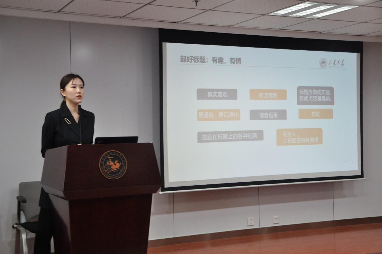 苗立群结合自身工作经验,从校园新媒体定位、平台运营的策划审核和微信公众号具体操作三个方面阐述了如何做好高校新闻宣传工作。她认为,校园新媒体应在宣传学院形象、学科特色、服务广大师生、引领校园文化上发挥更大作用。要充分利用人民日报、新华社等官方媒体渠道,注意文本用语规范;要熟能生巧,了解并运用多种宣传手段和方式,促进工作效率的提高和推文质量的提升。
