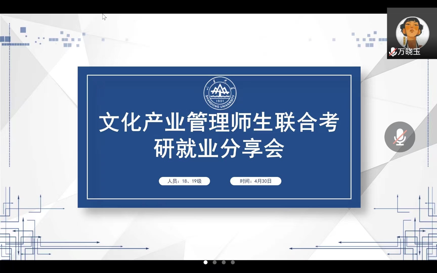 近日,文管教工党小组与2019级文化产业管理团支部组织开展考研就业分享会。活动邀请2019级文管班班主任牛淑萍、2018级文管班班主任章军杰及五位毕业班优秀学长学姐担任主讲,2019级文管班全体同学参加。