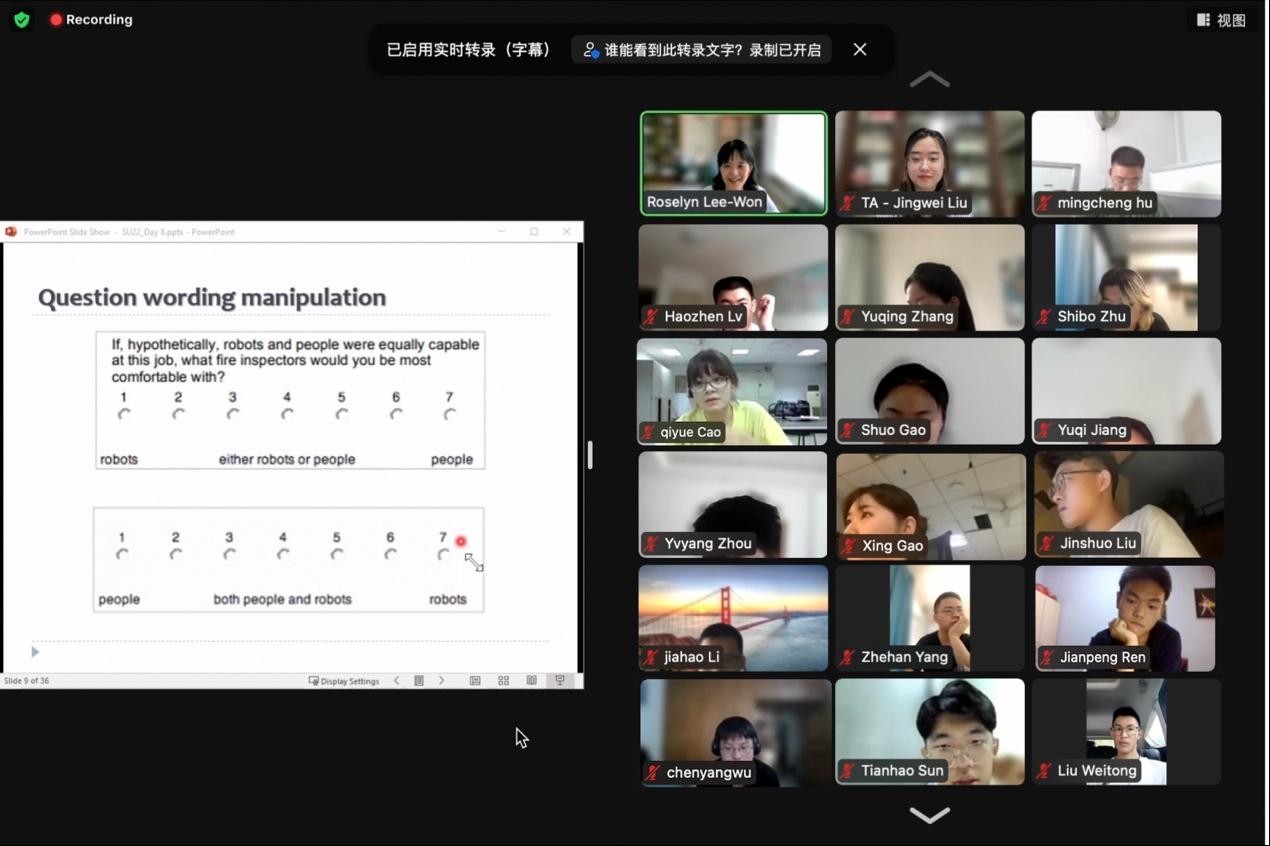 《人机互动与用户体验》分为八天进行,每天2个学时,共计16学时。课程旨在帮助员工了解新媒体领域人机交互和设计问题的相关概念、研究如何在人机交互设计过程中考虑用户的认知、情感和社交取向,以及理解人机交互中的各种设计界面类型,探索文化新业态实现的路径与方式等。《人机互动与用户体验》面向ylzzcom永利总站线路检测各校区、各专业员工选课。Roselyn Lee-Won副教授结合同学们的专业分布对课程内容进行了精心设计,有针对性地增加Digital Representations & User Experience: Avatars and Agents; Interacting with Non-Human Entities等内容为同学们的专业学习提供更多理论前沿与深入思考。