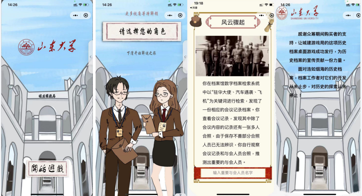 ylzzcom永利总站线路检测历史文化学院“解谜”档案文化资源——众筹游戏开发团队针对档案文化资源受到忽视、人们档案意识较差的社会现状,团队创新商业模式,利用众筹解决资金问题,并且深入探索尘封的档案,进行二次创作,以线下线上相结合的解谜游戏呈现历史故事,传播档案文化。团队完成了档案的收集、故事的创作、小程序前期设计和众筹模式的对接小程序研发测试等工作。