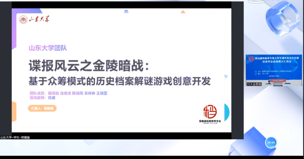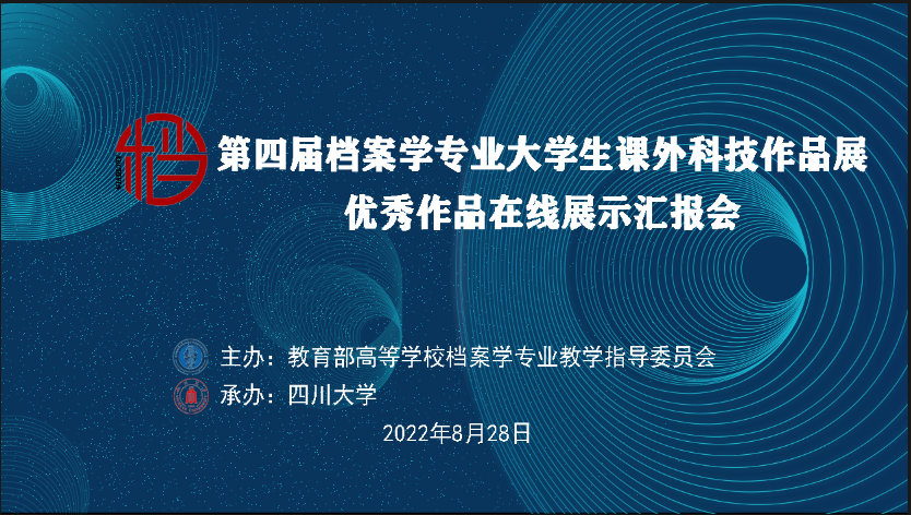 此次作品展及选拔赛由教育部高等学校档案学专业教学指导委员会主办,四川大学承办。大赛有27所高校参赛,共提交48份参赛作品,经过两轮评选,专家组最终评出15份优秀入选作品。展示会以线上方式进行,参会领导、嘉宾、高校师生、档案行业人员等近400人。