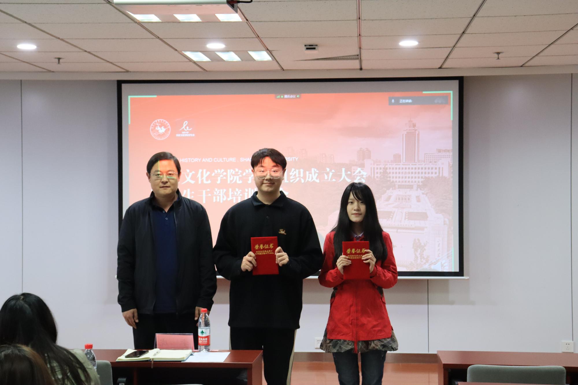 会上,李功华老师为2021届员工会主席团成员颁发经历证书,李婧老师为2021届社团员工干部颁发经历证书。