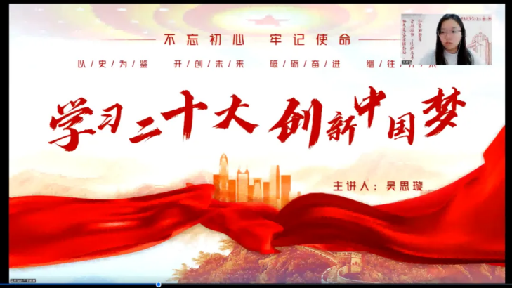 为深入学习宣传贯彻党的二十大精神,2023年1月19日晚,ylzzcom永利总站线路检测小树林鹰翔支教队队员吴思璇同学走进河南平顶山苗楼小学,以线上形式向同学们开展了主题为“学习二十大,创新中国梦”的党的二十大精神宣讲活动。新时代赋予少年儿童更优越的成长环境,新征程呼唤担当民族复兴大任的时代新人,当代青少年将成为社会主义现代化强国建设的生力军,深刻理解党的二十大精神对当代青少年健康成长具有重要意义。
